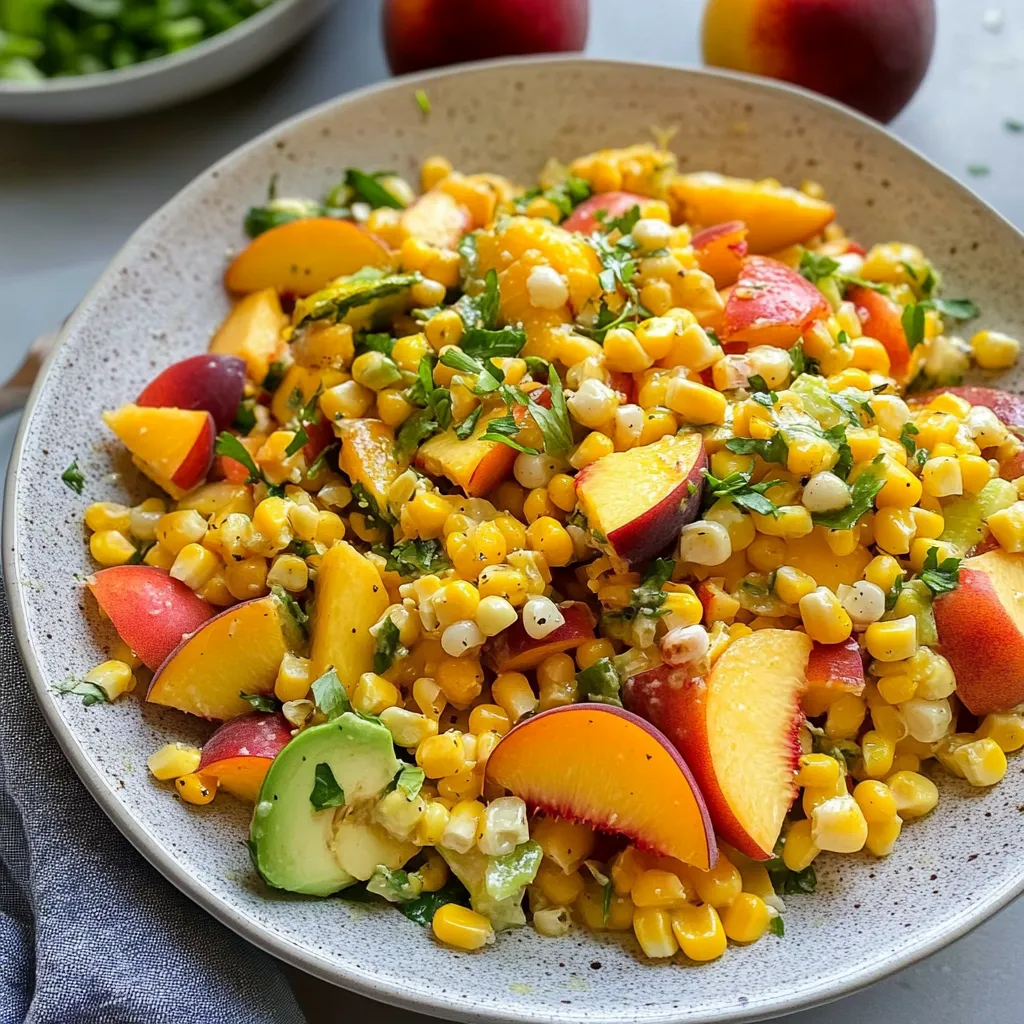 A vibrant Sweet Corn Salad with Peaches that captures the essence of summer, combining sweet corn and succulent peaches for a dish that’s easy to prepare and delightful to taste.