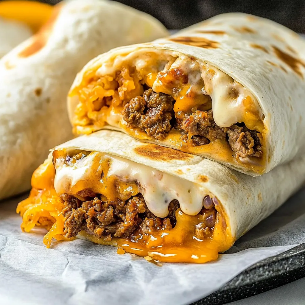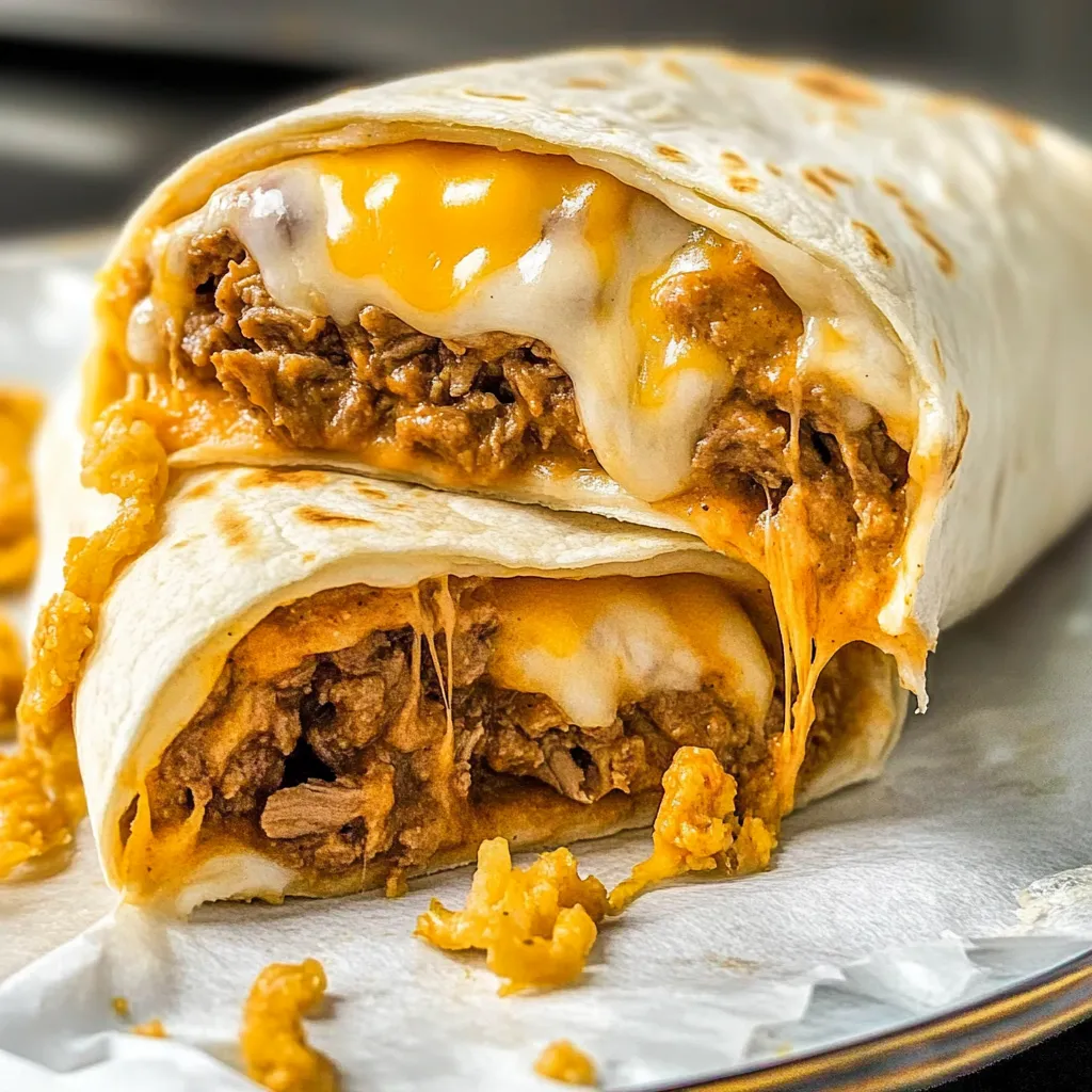 These Beefy Melt Burritos are perfect for a cozy weeknight dinner, served with a side of homemade tortilla chips, a fresh salad, or a warm bowl of seasoned rice. If you’re feeling nostalgic, why not enjoy them with a cold soda, just like those late-night Taco Bell adventures? Imagine sinking into your couch with your burrito wrapped in a paper towel, savoring every bite. Ah, bliss!