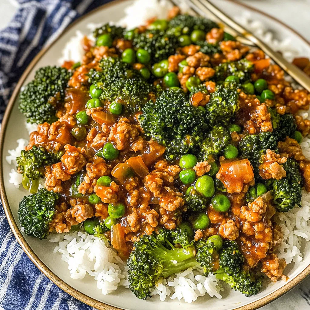 A heartwarming recipe for Teriyaki Ground Turkey, Broccoli, and Peas that combines lean ground turkey, fresh veggies, and a sweet, sticky teriyaki sauce for a nutritious, comforting meal.