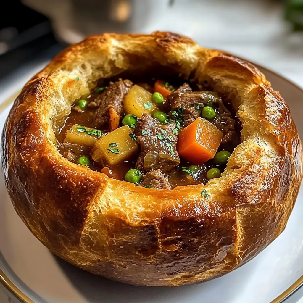 Keywords: beef stew, bread bowl, comfort food, traditional recipe