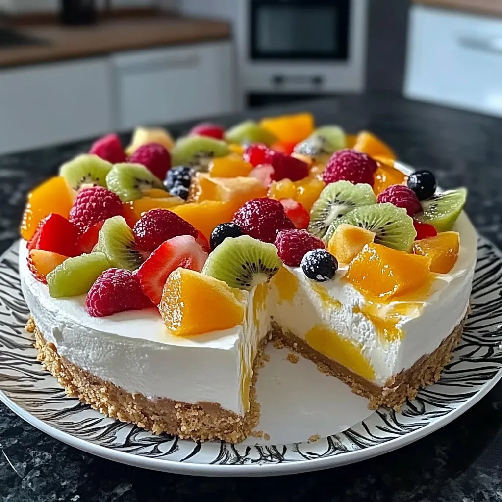 Indulge in a delightful tropical fruit salad cheesecake, a refreshing dessert bursting with delicious flavors. Perfect for any occasion!