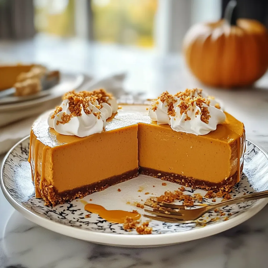 Keywords: Pumpkin Cheesecake, No-Bake Cheesecake, Fall Desserts, Thanksgiving Recipes