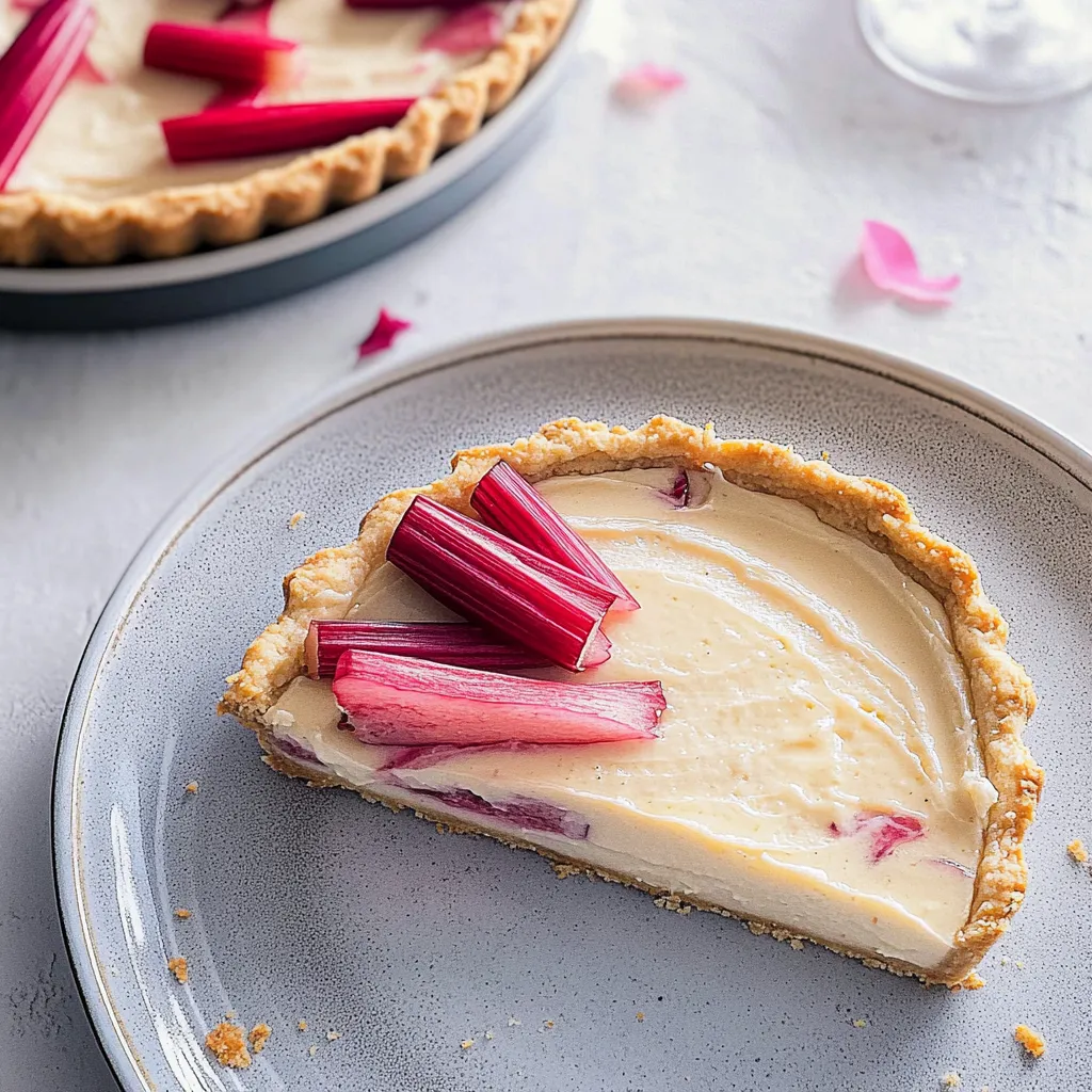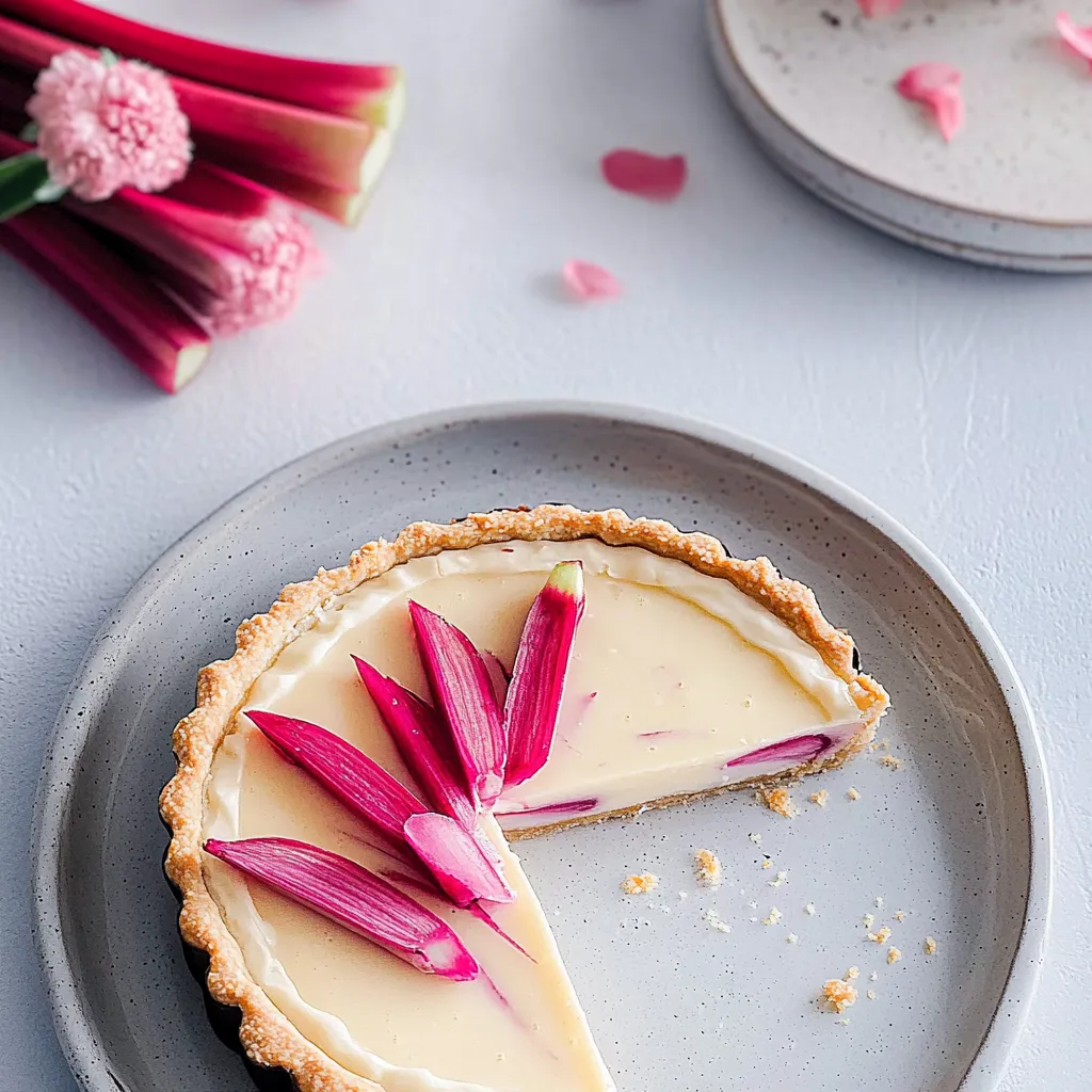 A delightful tart that combines the creamy flavor of white chocolate with the sharp tartness of fresh rhubarb, perfect for spring gatherings.